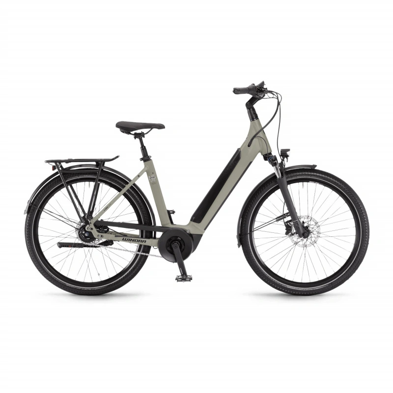 Le Winora Sinus N5f Eco est un vélo de ville qui ne manque pas d’argument pour vous séduire. Son cadre aluminium de type Easy Entry, sans barre supérieure permet d’enjamber le vélo très facilement ce qui est un réel plus en ville. Super élégant, il intègre la batterie Bosch Powertube 500 Wh. Ce vélo est équipé de performants freins à disque Shimano hydrauliques, d’une suspension avant Suntour, d’une potence ajustable et d’une tige de selle avec une suspension pour vous garantir un confort d’utilisation optimal. La transmission retenue par Winora pour ce modèle est totalement intégrée au moyeux et propose 5 vitesses. Ce type de moyeux permet de modifier le rapport engagé même lorsque le vélo est à l’arrêt. Ce Sinus pourra évoluer en ville avec beaucoup de facilité mais pourra également convenir à de plus longues sorties le week-end grâce à l’importante capacité de sa batterie et à la vivacité de son moteur Bosch Performance qui sera toujours disponible même dans les conditions les plus délicates.